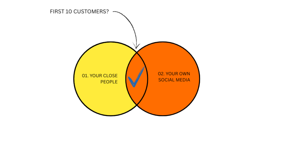 ඔයාගේ ලඟම ඉන්න පිරිස; ඔයාගේ පවුලේ අය ඔයාගේ යාලුවො නෑදෑයෝ කියන අය තමා මේ කොටසට වැටෙන්නේ. ඔයා බලන්න මුලින්ම මෙන්න මේ කුලකයේ ඉන්න අයගෙන් කාටද ඔයාගේ ප්රඩක්ට් එක නැත්නම් සර්විස් එක අවශ්යය වෙන්නේ කියලා. ඒ අයට ඔයාගේ ප්රඩක්ට් එක දෙන්න ඒ අයගේ Feedback ගන්න එයාලගේ Experience එක අහන්න.